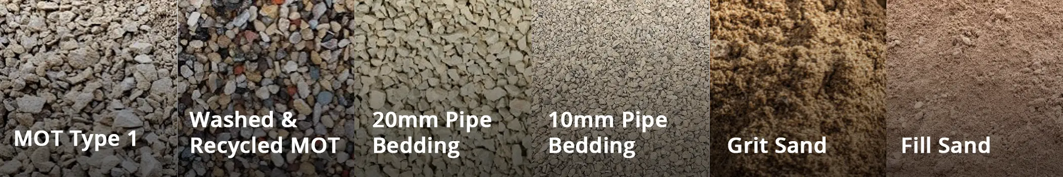We supply & deliver materials such as quarried MOT Type 1, washed aggregates, Limestone Pipe Bedding, Grit Sand, Fill Sand, Topsoil and other construction aggregates. We work with a network of suppliers to provide the materials you need for the best price.